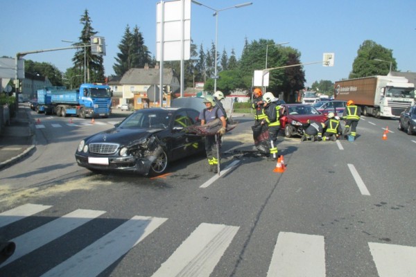 Heute wurde die FF Vöcklabruck zu einem Verkehrsunfall mit eingeklemmter Person auf die B 1 Höhe Esthoferkreuzung gerufen. Zwei Fahrzeuge prallten aus unbekannter Ursache aufeinander. Glücklicherweise war, entgegen der Alarmierungsmeldung, keine Person eingeklemmt. Die Verletzten wurden vom Roten Kreuz versorgt. Die Aufgabe der Einsatzmannschaft bestand darin, die Einsatzstelle von Fahrzeugteilen und Betriebsmittel zu reinigen, sowie den Abschleppdienst bei der Fahrzeugbergung zu unterstützen. Im Morgenverkehr entstanden erhebliche Behinderungen.