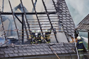 Zur Brandbekämpfung mußte eine ca 1 Km lange Schlauchleitung zu einem Bach gelegt werden um die Tankfahrzeuge und die Einsatzkräfte mit Wasser zu versorgen. Das angrenzende Nebengebäude konnte erfolgreich geschützt werden, der Dachstuhl des Wohnhauses brannte zur Gänze aus. Zum Zeitpunkt des Brandausbruchs war das Haus unbewohnt.