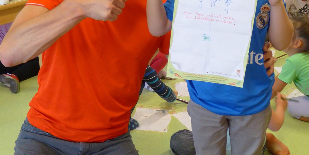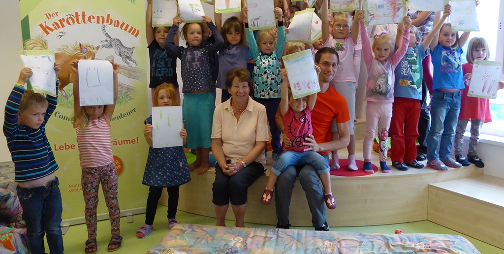 Am Montag, 13. Juli war Kinderbuch-Autor und Mentaltrainer Jonathan Mittermair mit seinem Bilderbuch „Der Karottenbaum – Conny Pony’s Abenteuer“ zu Gast im Kindergarten Gschwandt. Mehr als 40 begeisterte Kinder lauschten gespannt seiner einstündigen interaktiven Lesung. Am Ende durfte jedes Kind ihren/seinen größten persönlichen Traum auf einem eigenen „Traumblatt“ zeichnen und mit nach Hause nehmen.