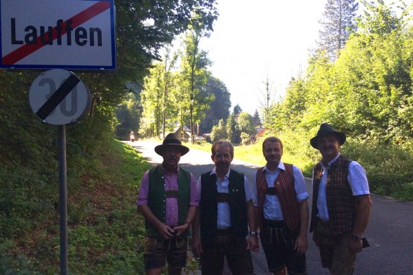 Dass die Straße von der Anzenaumühle bis zum Ortsschild von Lauffen durch die Marktgemeinde Bad Goisern saniert werden konnte, war Anlass für ein gemeinsames Treffen an der Gemeindegrenze: Bad Goiserns Bürgermeister Peter Ellmer und Vizebürgermeister Helmut Pilz trafen mit Bürgermeister Hannes Heide und dem aus Lauffen stammenden Gemeinderat Josef Pilz zusammen. Josef Pilz vermittelte den Bad Goiserer Gemeindevertretern den Wunsch der Lauffner Bevölkerung nach der Straßensanierung und nach einem Gespräch mit den beiden Bürgermeistern konne das Anliegen zur Zufriedenheit erledigt werden.