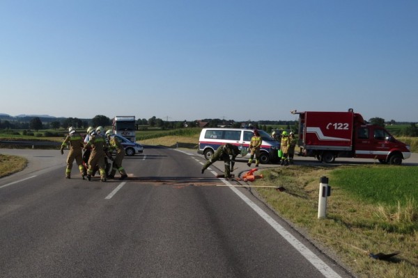 Der Mopedlenker wurde auf die Fahrbahn geschleudert und zog sich erhebliche Verletzungen im Kopfbereich, sowie Platz,- und Schürfwunden am gesamten Körper zu und wurde mit der Rettung in das LKH Vöcklabruck eingeliefert. Die Feuerwehr reinigte die gesperrte Landstraße von Fahrzeugteilen, Öl und Treibstoffen.