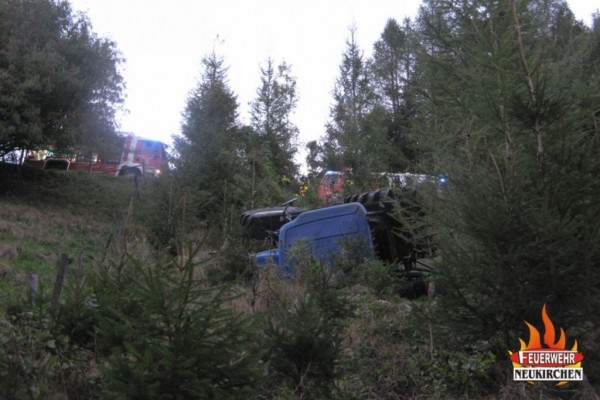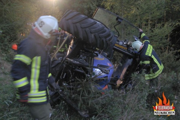 Verletzungen unbestimmten Grades erlitt am 28. September 2015 ein 62-Jähriger aus Altmünster, nachdem er mit seinem Traktor abstürzte. Der Mann fuhr mit dem Traktor gegen 18:15 Uhr auf der Gemeindestraße Tannachweg Richtung Gmundnerberg. In einem engen Waldstück geriet er aus bislang unbekannter Ursache von der Fahrbahn, stürzte ca. 20 Meter ab und kam in der steilen Böschung zum Liegen. Eine hinter ihm fahrende Autofahrerin verständigte die Einsatzkräfte und leistete Erste Hilfe. Das Fahrzeug wurde von der Feuerwehr Reindlmühl mit einem Seil gesichert. Der Verletzte konnte nun aus dem Traktor befreit werden. Er wurde nach der Erstversorgung in das LKH Vöcklabruck eingeliefert.