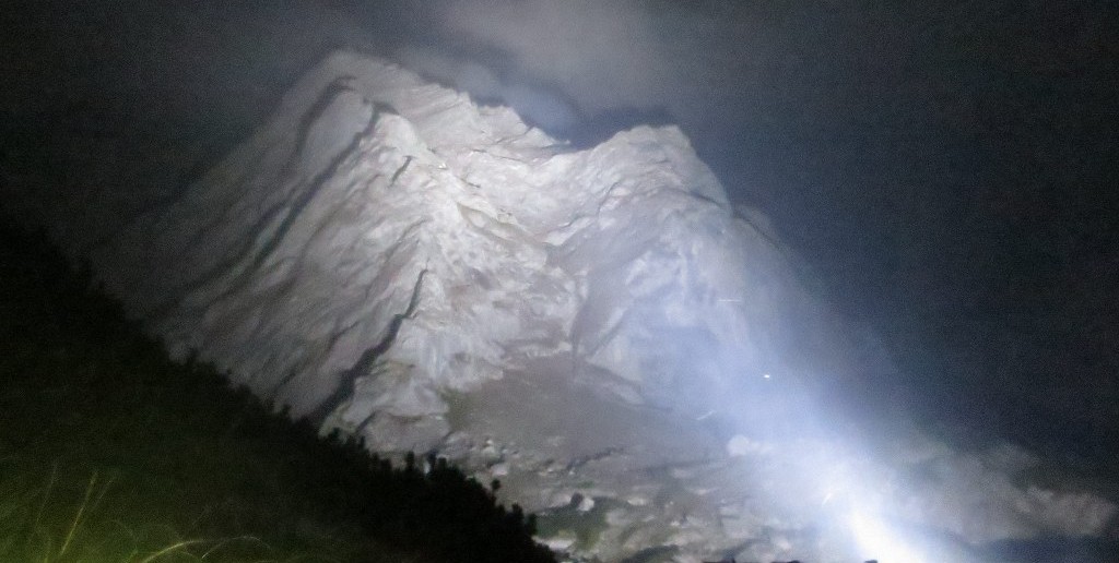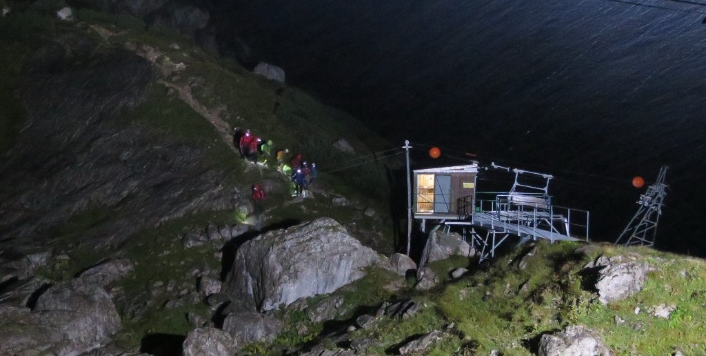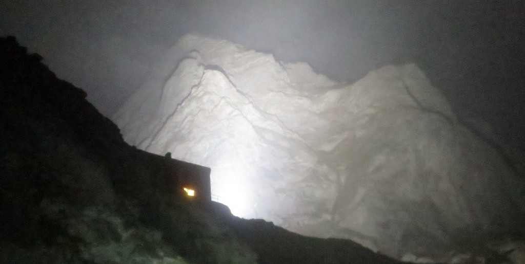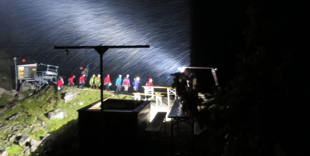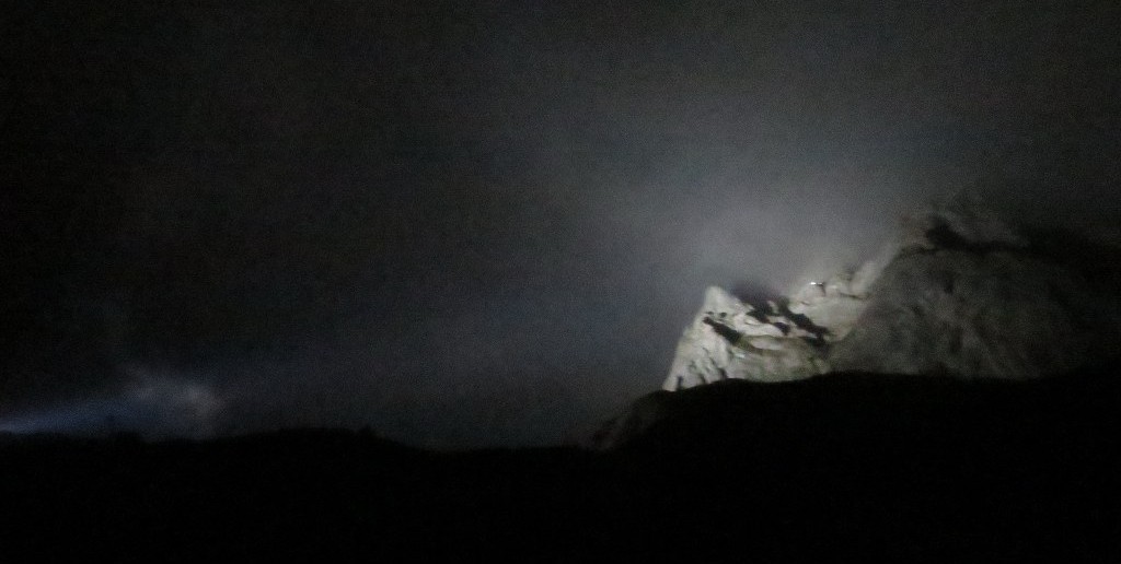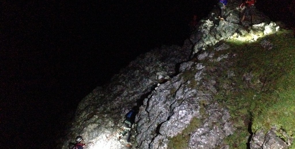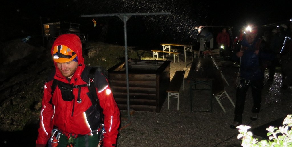 Nur mit 2 Stirnlampen ausgerüstet und außerhalb des Handy Empfangsbereich suchten sie sich einen Platz in der Wand für eine Mögliche Übernachtung. Der Hüttenwirt vermisste die Gruppe mittlerweile und alarmierte die Bergrettung.