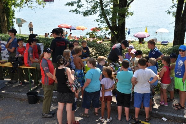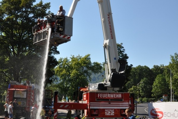 Ebenso unter dem Motto GEMEINSAM.SICHER.FEUERWEHR stand die Ferienpassaktion der Marktgemeinde Altmünster, Ende August im Rahmen des Bootshausfestes beim Solarbad. Aufgrund des hochsommerlichen Wetters lag das Hauptaugenmerk auf der Vorführung der wasserführenden Armaturen. Die verschiedensten Schläuche und Strahlrohre wurden sofortausprobiert: Im Nu war die schönste Wasserschlacht im Gange. Bei einer Fahrt mit der Teleskopmastbühne in luftige Höhen, konnten die Kinder ihren Heimatort einmal von oben bestaunen. Aber auch mit dem Feuerwehrboot eine Runde auf dem Traunsee zu drehen stand bei den Kindern hoch im Kurs. Zum ersten Mal nahmen auch Kinder aus dem Asylwerberheim an der Ferienpassaktion teil, und es machte ihnen sichtlich großen Spaß.