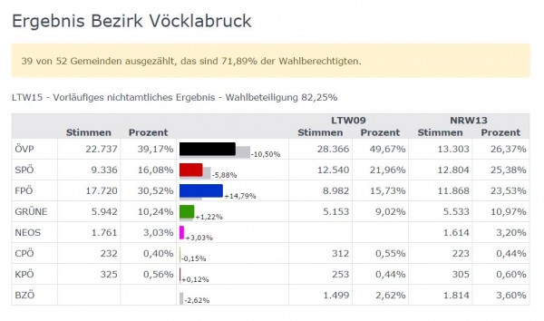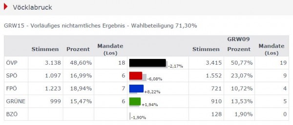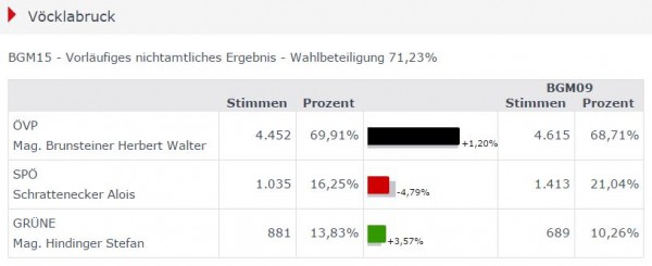 In der Bezirkshauptstadt Vöcklabruck konnte der amtierende Bürgermeister Herbert Brunsteiner seine Stellung erfolgreich behaupten.
