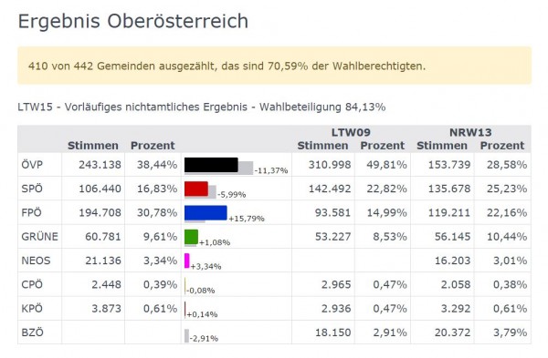 Schwarz grün ist seit der heutigen Wahl in Oberösterreich Geschichte. Während die Grünen sich über leichte Zugewinne freuen können und ihren Landesrat erfolgreich verteidigt haben, erhält Landeshauptmann Dr. Josef Pühringer mit einem Verlust von 10,4 % das schlechteste Wahlergebnis seiner politischen Laufbahn.
