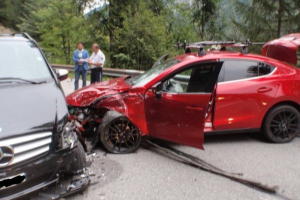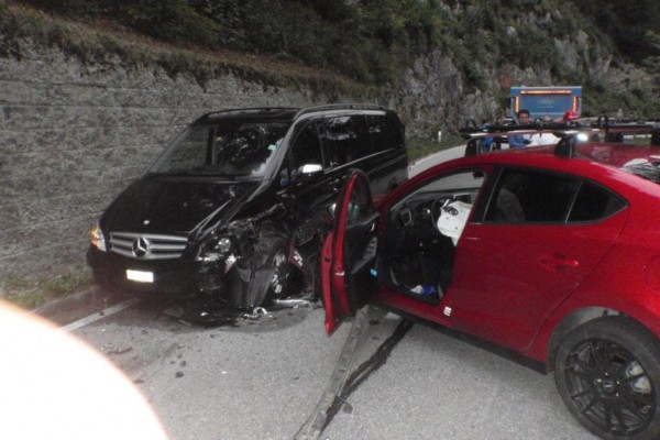 Zuerst touchierte er mit dem LKW seitlich und anschließend stieß er mit einem PKW auf der Gegenfahrbahn zusammen. Beim LKW wurde der Reifen aufgeschlitzt und an den beiden anderen Unfallautos entstand Totalschaden.
