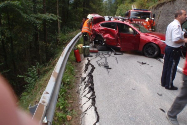 Zu einem Verkehrsunfall wurde die FF Hallstatt am 14.09.2015 gegen 16:00 Uhr alarmiert. Der Unfall ereignete sich auf der B 547 zwischen Hallstatt und Gosaumühle. Ein tschechischer Kraftfahrer überholte mit hoher Geschwindigkeit, trotz der engen Straßenverhältnisse in diesem Bereich, die vor ihm fahrenden PKW bzw. LKW.