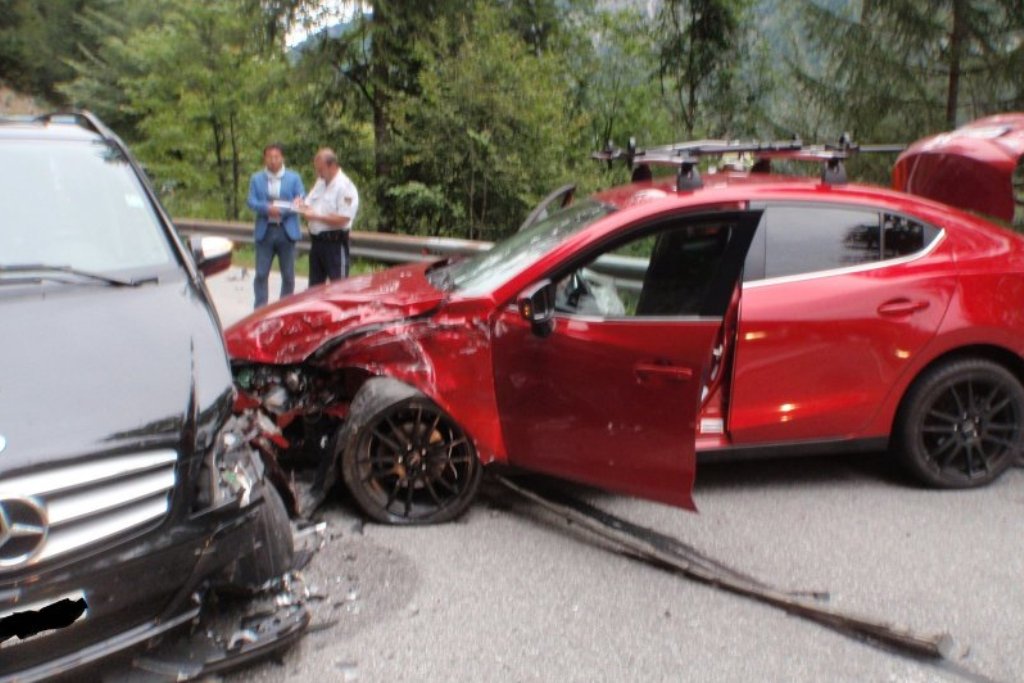 Zuerst touchierte er mit dem LKW seitlich und anschließend stieß er mit einem PKW auf der Gegenfahrbahn zusammen. Beim LKW wurde der Reifen aufgeschlitzt und an den beiden anderen Unfallautos entstand Totalschaden.