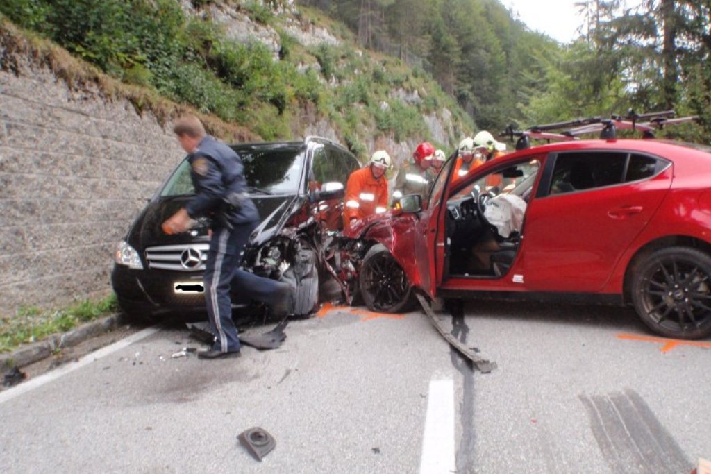Zu einem Verkehrsunfall wurde die FF Hallstatt am 14.09.2015 gegen 16:00 Uhr alarmiert. Der Unfall ereignete sich auf der B 547 zwischen Hallstatt und Gosaumühle. Ein tschechischer Kraftfahrer überholte mit hoher Geschwindigkeit, trotz der engen Straßenverhältnisse in diesem Bereich, die vor ihm fahrenden PKW bzw. LKW.