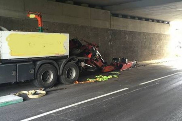 Am 18. September 2015 fuhr ein 38-jähriger Kraftfahrer um 9:15 Uhr mit dem Lkw samt Kranaufbau auf der Attergau Landesstraße L 540 Richtung St. Georgen. Dabei dürfte er vermutlich den Kran nicht vollständig eingezogen haben. Bei der Autobahnunterführung prallte der Kranausleger gegen das Tunnelportal. Dabei wurde der Kranausleger abgerissen und stürzte auf die Fahrbahn.