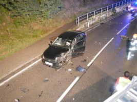 Am Montagabend, 07.09.2015 wurde die Feuerwehr Scharnstein um 22.33 Uhr von der Landeswarnzentrale zu einem schweren Verkehrsunfall auf die L549 Almseelandesstraße im Bereich Kothmühle alarmiert. Aus unbekannter Ursache stieß ein Richtung Scharnstein fahrender PKW-Lenker mit einem ihm entgegenkommenden Fahrzeuglenker frontal zusammen. Durch die Wucht des Aufpralles wurden die Wrackteile auf zirka 70 Meter verteilt. Beim Eintreffen der Feuerwehr Scharnstein waren die verletzten PKW Lenker bereits vom Roten Kreuz geborgen und erstversorgt. Die Hauptaufgaben der Feuerwehr waren die Absicherung und Ausleuchtung der Einsatzstelle, die Errichtung einer örtlichen Umleitung, Binden von ausgelaufenen Betriebsmitteln, sowie das Freimachen der Verkehrswege. Die beiden verletzten Fahrzeuglenker wurden zur weiteren Versorgung ins Krankenhaus eingeliefert. Für die Dauer des Feuerwehreinsatzes wurde die Almseestraße für diesen Bereich komplett gesperrt.