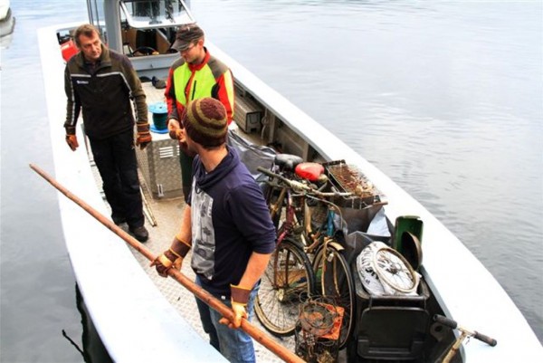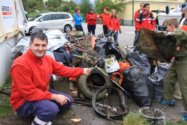 Die ÖWR Taucher bargen einiges an Müll vom Seegrund, der vom Winde  verweht oder von achtlosen Badegäste und Bewohner in den See „entsorgt“ wurde. Unter den Fundstücken waren neben vielen Plastikflaschen und Getränkedosen auch Sonnenschirme, Liegestühle und Kurioses wie eine Klomuschel, Fahrräder, ein Griller und sogar Autobatterien. Der Uferbereich wurde von der Wasserrettungsjugend abgesucht. Unglaubliche 20 Müllsäcke konnten allein im Bereich des Westufers gesammelt werden.