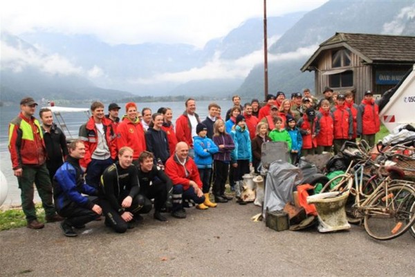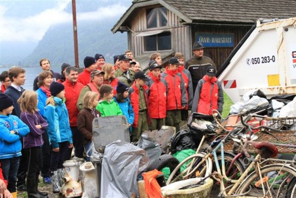 An der Reinigungsaktion in Hallstatt beteiligte sich neben der Feuerwehr Hallstatt auch die Österreichische Wasserrettung mit den Ortsstellen Hallstatt und Bad Goisern, die einen ganzen Vormittag mit 2 Booten, 20 Erwachsenen und 9 Jugendlichen und Kindern im Einsatz war.