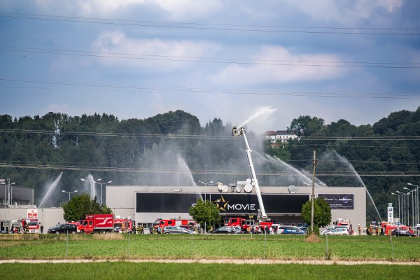 Die Annahme: Durch einen technischen Defekt war in dem stark frequentierten Kinocenter ein Brand ausgebrochen. Die alarmierte Feuerwehr Regau forderte sofort Verstärkung an. Auch das Rote Kreuz wurde zu Hilfe geholt und rückte mit einem Großaufgebot von 60 Sanitätern an.