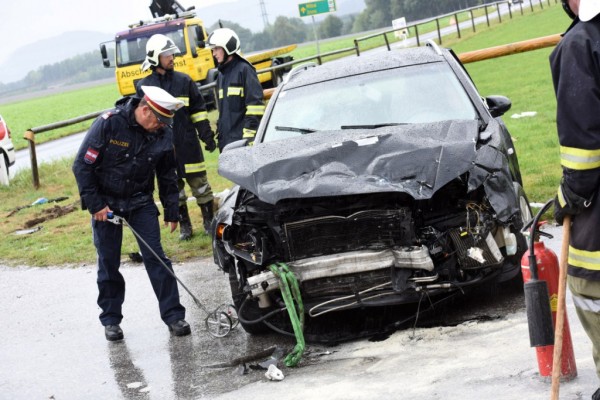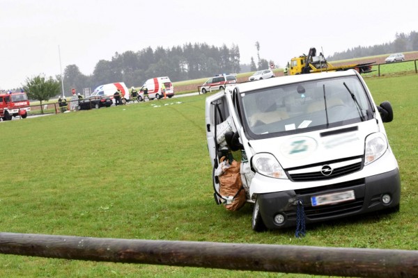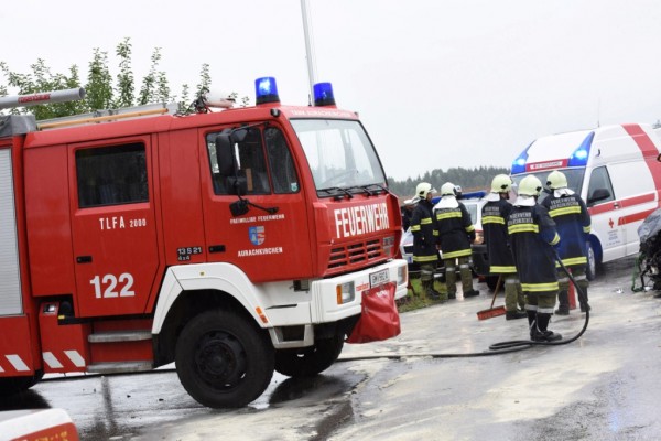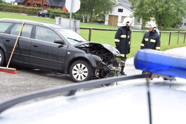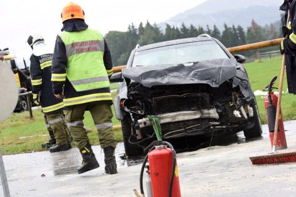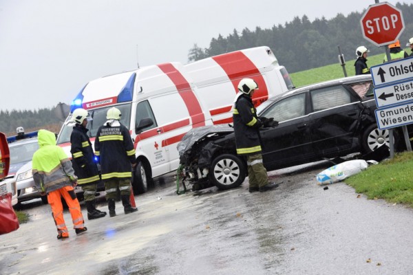 Zwei Schwerverletzte forderte am Samstag, 05.09.2015 kurz nach 9.15 Uhr ein Crash auf der Kreuzung direkt vor dem Feuerwehr-Zeughaus in Aurachkirchen.