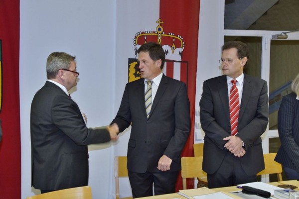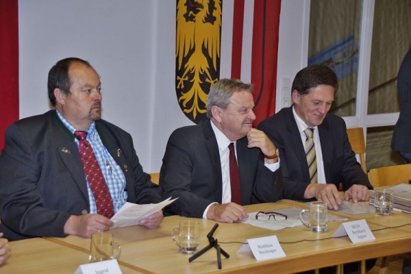 Nach der Begrüßung durch Bürgermeister Fritz STEINDL wurde der erste Punkt der Tagesordnung, die Angelobung des direkt gewählten Bürgermeisters Fritz STEINDL, des Vizebürgermeisters Mathias BUCHINGER, der Mitglieder des neu gewählten Gemeinderates und der Ersatzmitglieder durch Dr. Bernhard AIGNER als Vertreter des Bezirkshauptmannes feierlich durchgeführt.