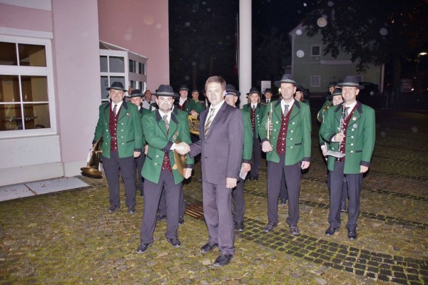 Im Anschluss an die erste Gemeinderatssitzung lud Fritz STEINDL alle zu einer kleinen Jause und einem Umtrunk ein. Die Musikkapelle der Gemeinde Gschwandt unter Obmann Wolfgang WAMPL nahm in der Zwischenzeit Aufstellung vor der Volksschule und gab dem neu angelobten Bürgermeister ein Ständchen zum Besten. Natürlich übernahm Fritz STEINDL dabei den Taktstock und dirigierte den Klangkörper selbst wie ein Profi.