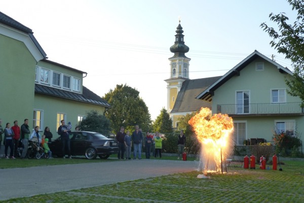 Zum Abschluss wurde noch eine Löscherschulung, wo jeder Interessierte die Handhabung eines, bzw. verschiedener Löscher üben konnte, durchgeführt. Imposant war die Demonstration, wenn versucht wird brennendes Fett mit Wasser zu löschen. Bitte Bilder unbedingt ansehen und diesen Fehler nicht begehen!!