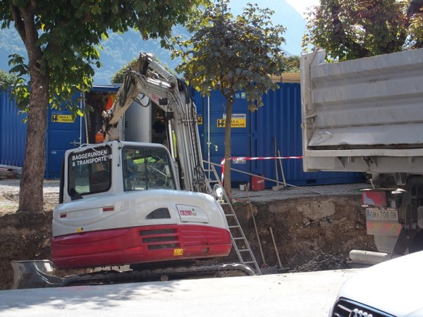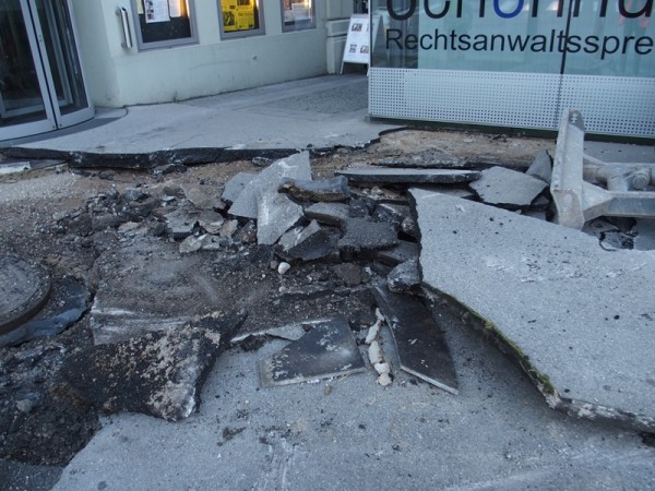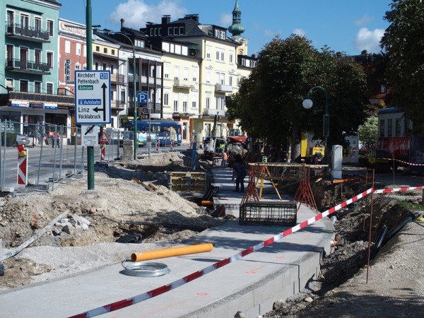 Mittlerweile wurden auch die ersten Schilder für das neue Verkehrsleitsystem angeliefert und montiert – ab Montag, dem 28. 9. ist es bis zum Ende dieses Bauabschnitts nicht mehr möglich, die Engstelle mit dem Auto zu durchfahren. Die Tiefgarade ist und bleibt aber von Esplanadenseite aus befahrbar und auch die Grabenkreuzung verbindet natürlich nach wie vor die Bahnhofstraße mit der Innenstadt.