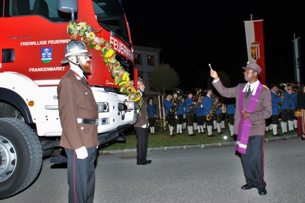 Am Abend des 25.09.2015 wurde die neue Teleskopmastbühne der Freiwilligen Feuerwehr Frankenmarkt von Pfarrer Dr. Anthony Ejeziem feierlich gesegnet. Das neue Fahrzeug wird nicht nur in Frankenmarkt sondern auch in den Nachbargemeinden zur Brandbekämpfung und Menschenrettung aus Höhen bis zu 30m eingesetzt werden.
