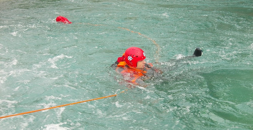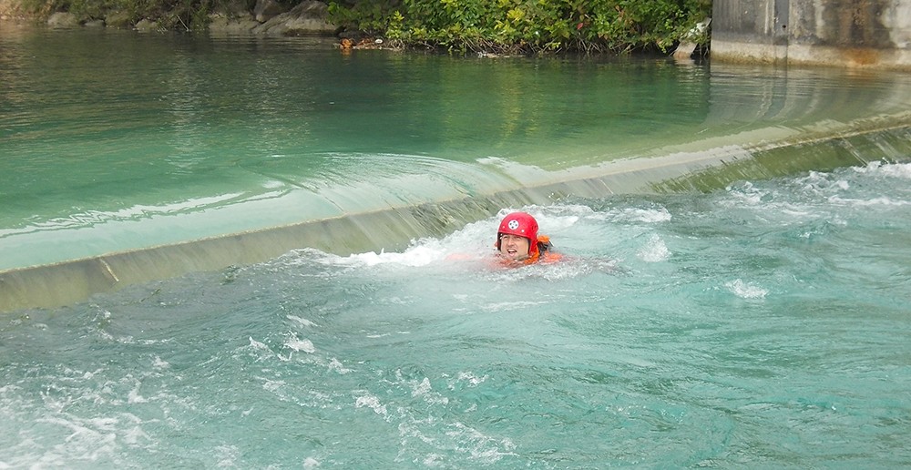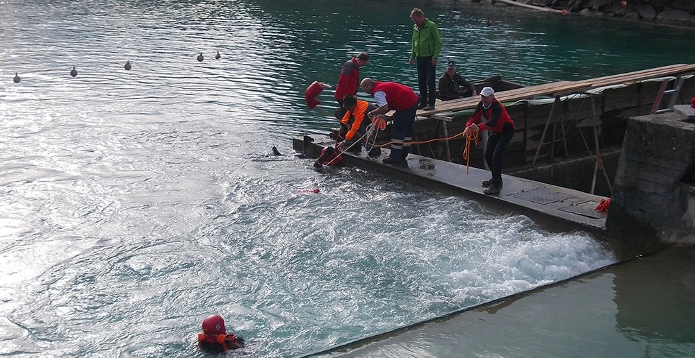 An Hand der praktischen Übungen wurde vorgeführt welche Gefahren im Bereich der Wasserwalze (Rückströmung) unterhalb einer Wehr oder eines Absturzes lauern. Im praktischen Teil wurde die Bergung von Verunglückten aus diesem Gefahrenbereich geübt. (Fotos: ÖWR)