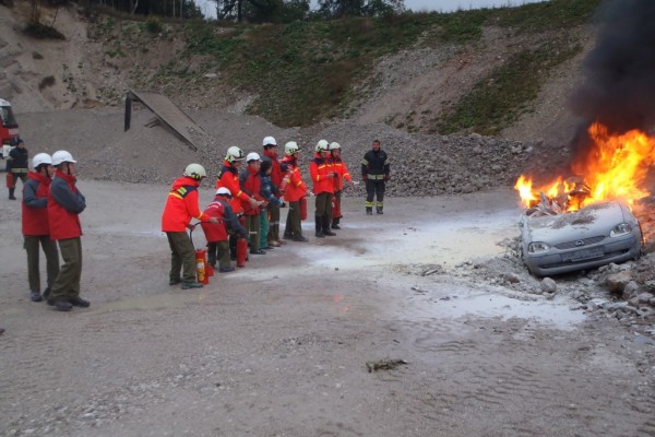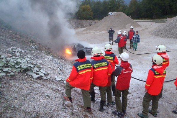 „Fahrzeugbrand – Schottergrube Windhager“, mit dieser Übungsmeldung rückten die Jugendgruppen der Feuerwache Ahorn – Kaltenbach und der Hauptfeuerwache Bad Ischl am Freitag, den 16.10.2015 aus. Am Einsatzort angekommen wurde ein Fahrzeug, welches in Vollbrand stand, vorgefunden.