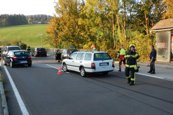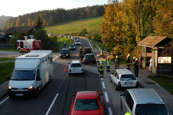 Am späten Montagnachmittag, 12.10.2015 wurde die Freiwillige Feuerwehr Scharnstein um 17:13 Uhr von der Landeswarnzentrale zu einem Verkehrsunfall auf die B120 im Bereich Kreuzung Gasthaus Thann alarmiert. Drei PKWs kollidierten aus unbekannter Ursache im Kreuzungsbereich, wobei die Wucht so groß war, dass bei den Fahrzeugen erheblicher Sachschaden entstand. Die beteiligten Fahrzeuglenker wurden vom Roten Kreuz, Ortsstelle Scharnstein auf der Unfallstelle erstversorgt und zur weiteren Behandlung ins Landeskrankenhaus Kirchdorf transportiert. Die Hauptaufgaben der Feuerwehr waren die Absicherung der Einsatzstelle, die Errichtung einer örtlichen Umleitung, Binden von ausgelaufenen Betriebsmitteln, sowie das Freimachen der Verkehrswege. Für die Dauer des Feuerwehreinsatzes wurde die B120 für diesen Bereich einseitig gesperrt.
