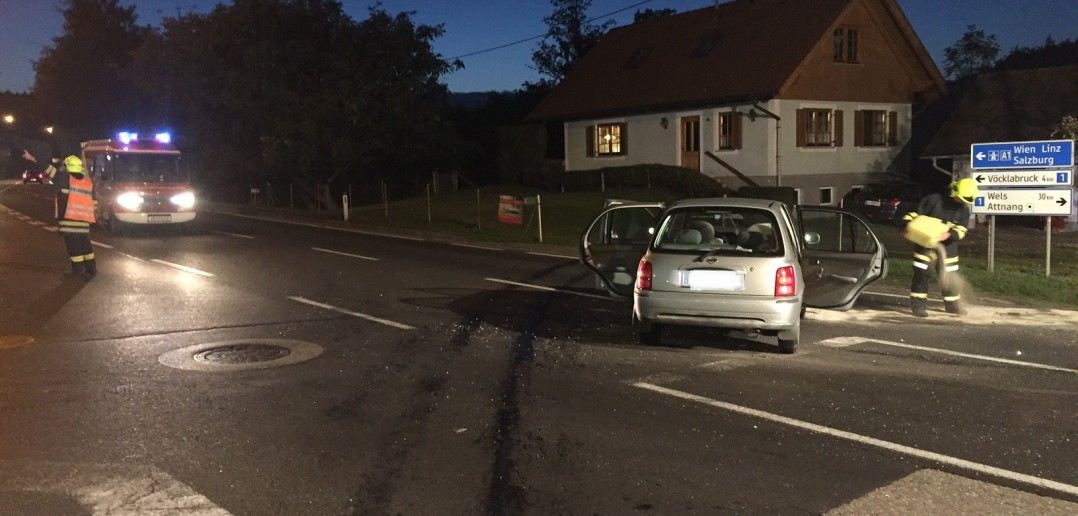 In den Abendstunden des 03.10.2015 kam es im Kreuzungsbereich Salzburger Straße/Vöcklabrucker Straße aus bisher ungeklärter Ursache zu einem Verkehrsunfall mit zwei Fahrzeugen. Die Polizei Attnang, die Feuerwehr Puchheim und das Rote Kreuz standen im Einsatz. Beide Insassen wurden vom Roten Kreuz versorgt und anschließend abtransportiert.