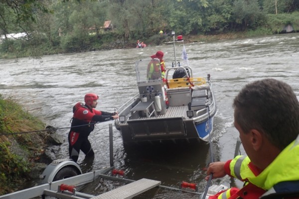 35 Teilnehmer, darunter der Fließwasserretter und Bootsführer Felix Schilcher aus Ebensee, konnten auf unterschiedlichsten Booten (Arbeitsboot, Jet-Boot, Raftboot und Schlauchboot) die einzelnen Szenarien durchspielen. Weiter standen den Übungsteilnehmern noch ein Jet-Ski und ein Luftkissenboot des LV Steiermark zum intensiven Kennenlernen zur Verfügung.
