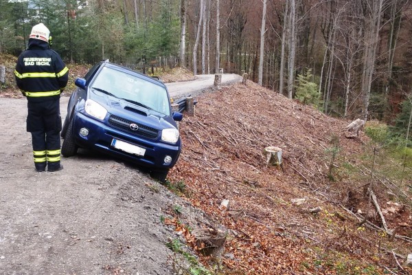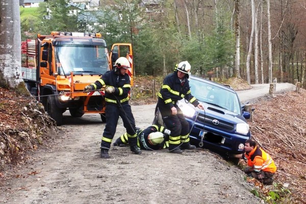 Heute Vormittag wurden die Ischler Kameraden zu einer Fahrzeugbergung auf der Katereckstraße alarmiert. Ein Fahrzeuglenker kam aus bisher unbekannter Ursache von der Fahrbahn ab und saß dabei mit seinem PKW auf der Bodenplatte des Fahrzeuges auf. Der Lenker hatte bei diesem Missgeschick Glück im Unglück, dass er nicht über eine steile Böschung stürzte. Jedoch konnte er sich selbst nicht mehr aus seiner misslichen Lage befreien und rief daher die Einsatzkräfte der freiwilligen Feuerwehr zu Hilfe.