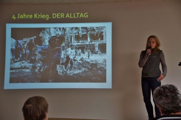 Mit ihm nahmen auf der Bühne Frau Mag. Petra RAMSAUER, Journalistin und Kriegsreporterin, die von einem Auslandsaufenthalt im Kriegsgebiet erst heute heimgekommen war und direkt vom Flughafen Schwechat nach Gschwandt gekommen ist. Frau Mag. RAMSAUER ist Expertin für die aktuellen Krisenherde in Syrien und hat vor Kurzem das Buch „Die Dschihad-Generation: Wie der apokalyptische Kult des Islamischen Staats Europa bedroht“ veröffentlicht. Bevor die Diskussionsrunde begann schilderte Frau Mag. RAMSAUER die schrecklichen Zustände im nahen Osten und zeigte auch beeindruckende Bilder vom Istzustand.