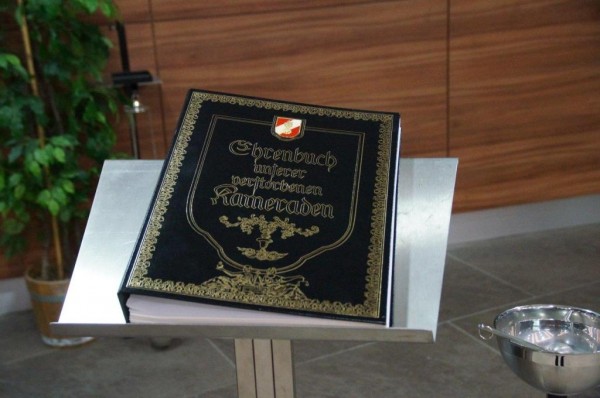 In diesem Kondolenzbuch sind alle verstorbenen Mitglieder unserer Wehr verewigt. Das Buch wurde in mühevoller Kleinarbeit aktualisiert und vervollständigt und wird nun an einem würdigen Platz im Feuerwehrhaus unterhalb der Statue des Hl. Florian in einer Glasvitrine aufbewahrt.
