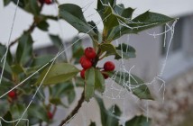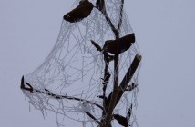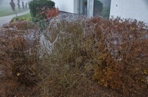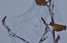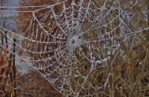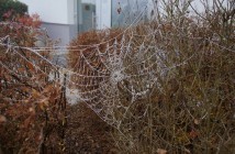 Wie schön die perfekte Zusammenarbeit von Fauna, Flora, Nebel und Kälte sein kann, zeigte sich am Dienstag 3.11.2015 vormittags in Gschwandt bei Gmunden. Die Nacht war nebelig, am Morgen frostig, in den Hecken und Sträuchern vor unserem Haus in Gschwandt haben Spinnen fleißig und präzise am Vortag ihre Netze angefertigt und über Nacht fegte der Wind die feuchten Nebelschwaden eben durch unsere Gartenanlage. Die kleinen Nebeltröpfchen blieben dabei an den hauchdünnen Spinnenfäden hängen und wurden über Nacht zu Eisgebilden. Ein Schauspiel der besonderen Art, die man nicht alle Tage bewundern kann und natürlich einen Fotograf nicht untätig vorbeigehen lässt. Auch Sie sollten diese Bilder betrachten können und vielleicht in den nächsten Morgenstunden sich selbst mit eigenen Augen auf die Suche nach diesen grazilen Gebilden machen.