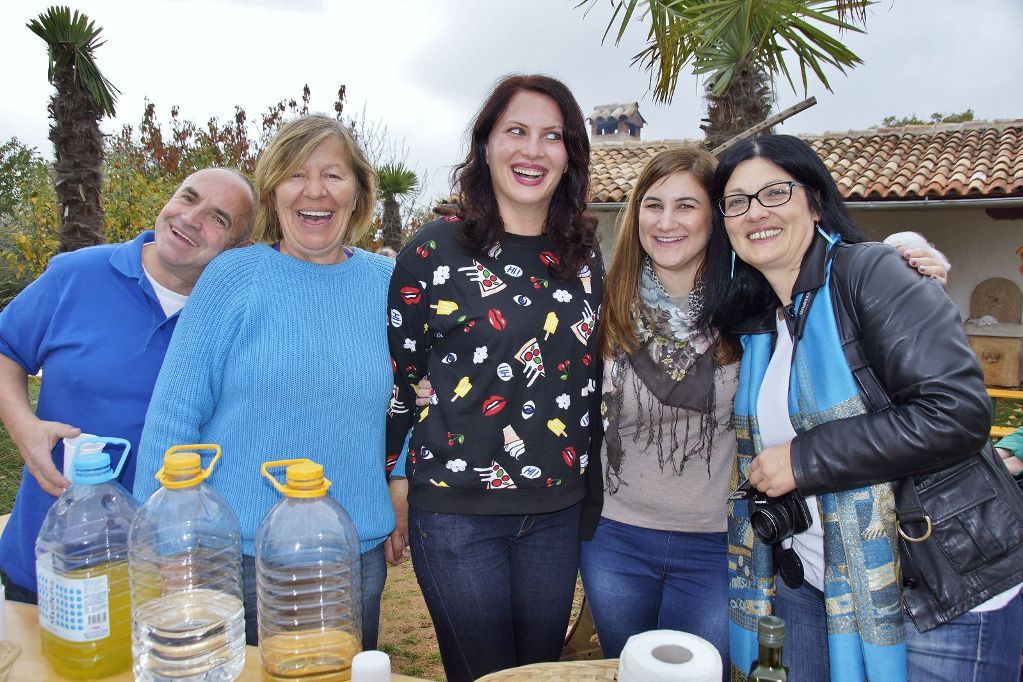 Nach einem reichhaltigen Frühstück setzte sich am nächsten Tag die gesamte Buskolonne in Richtung Landesinnere nach ZBANDAJ/Porec in Bewegung. Dort angekommen wurde die Reisegruppe freundlichst empfangen und der erste Weg war in die dorfeigene Ölmühle, wo auch die Produktion des Olivenöles ausreichend erklärt und die Ölpresse gezeigt wurde. Weiter ging es dann direkt in das Dorf mit seinen 180 Einwohnern. Mit einer Musikkapelle, einem Empfangskomitee angeführt vom Bürgermeister selbst, gab es gleich flüssige Nahrung in Form von selbstgebranntem Grappa und unter Musikbegleitung begann der Marsch in den Olivenhain.