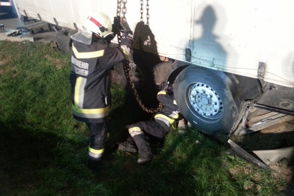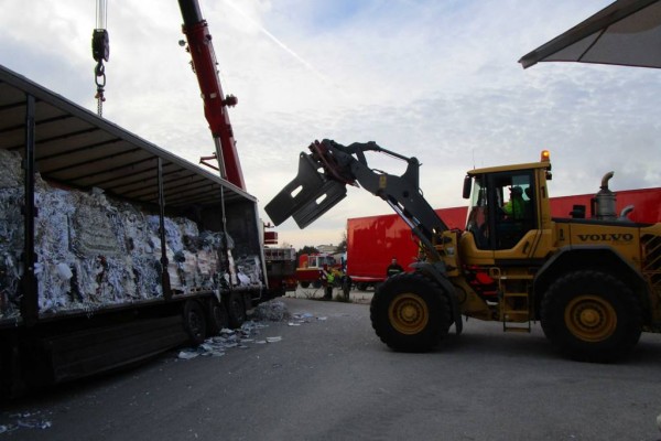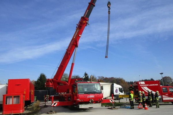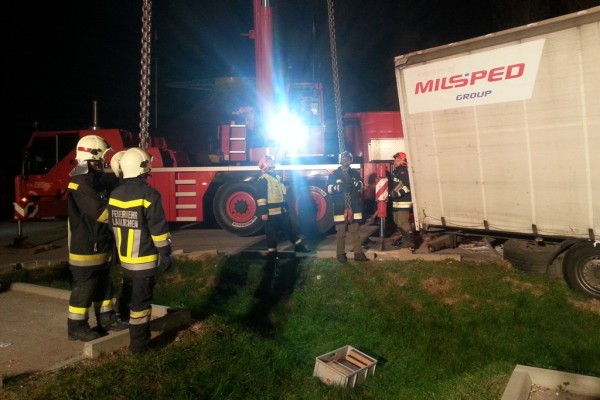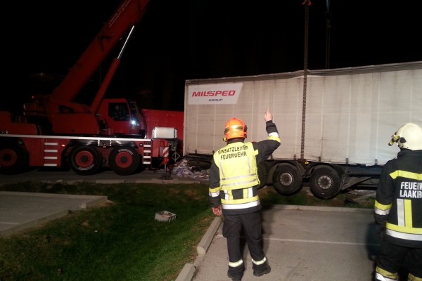 Eine umfangreiche LKW-Bergung forderte die Feuerwehr der Stadt Laakirchen beinahe den ganzen gestrigen Tag. Ein Sattelschlepper war im Bereich eines Supermarkt-Parkplatzes beim Wenden mit den Hinterachsen in einen Entwässerungsgraben geraten und saß fest. Hebeversuche in beladenen Zustand waren anfangs nicht möglich. Erst nachdem das mit 25t Altpapier beladene Fahrzeug mit Hilfe von Radladern der Heinzel Paper Laakirchen Papier AG komplett entladen war, konnte daran gegangen werden, das Fahrzeug mittels eines Großkranes zu bergen.