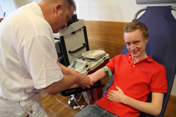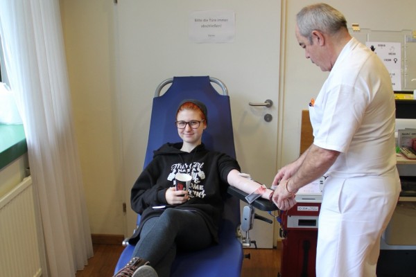 Nachdem sich ca. 50 Spenderinnen und Spender angemeldet hatten, fanden sich mehr als 70 Schülerinnen und Schüler ein, um die Möglichkeit der Erstspende wahrzunehmen. Zuerst mussten sie aber den Gesundheitscheck bestehen.