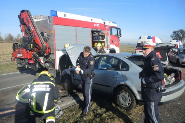 Mit ihren drei Buben im Alter von 4, 7 und 15 Jahren kam eine hochschwangere Mutter mit dem Auto von der Fahrbahn ab. Die 37-jährige Welserin lenkte den Pkw am 27. Dezember 2015 gegen 12:15 Uhr auf der alten B 1 in Richtung Lambach. Im Gemeindegebiet Schwanenstadt war die Fahrbahn im Schatten auf einer Länge von ca. 70 Metern vereist. Dadurch kam das Auto ins Schleudern und rechts von der Fahrbahn ab, stieß gegen ein Hinweiszeichen und eine kleine Böschung. In weiterer Folge überschlug sich das Auto und kam seitlich liegend zum Stillstand.