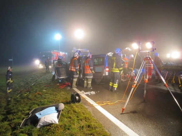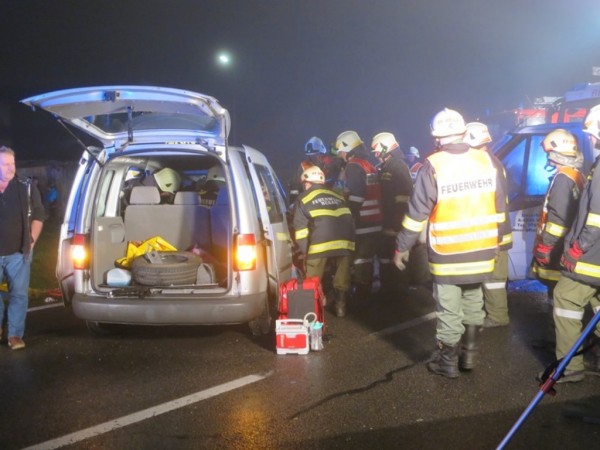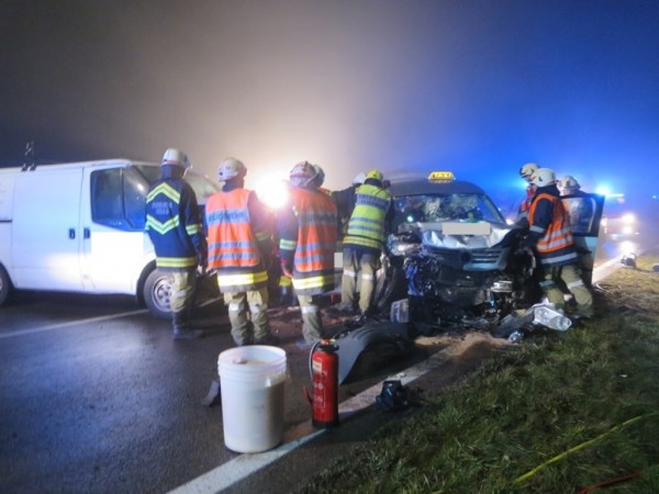 Die Feuerwehren Regau und Rutzenmoos konnten drei Personen aus dem Taxi mittels Bergeschere retten. Alle sechs Insassen der beteiligten Fahrzeuge wurden zum Teil schwer verletzt ins LKH Vöcklabruck eingeliefert. Ein Alkotest mit dem 33-Jährigen verlief positiv.