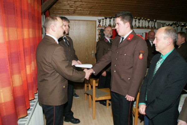 Angelobt wurde FM David Niedermayr. Befördert wurden zum OFM Egger Daniel u. Mörwald Corinna, zum HFM Scheidleder Kevin, zum LM Fürthauer Gerald u. Stefan Mörwald, zum BM Hans-Peter Mayr u. Michael Neulinger. Die Feuerwehrdienstmedaille für 50-jährige Tätigkeit erhielt OBM Hermann Starzinger. Das Oberösterreichische Feuerwehrverdienstkreuz 3. Stufe erhielt E-AW Johann Schachl.