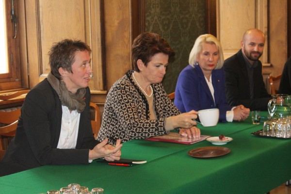 In der anschließenden sehr angeregten Diskussion mit Abgeordneten aller im Landtag vertretenen politischen Parteien wurden von den Schüler/innen aktuelle Themen zur Sprache gebracht, wie z. B. die Aufgabenbereiche und Gehälter der Abgeordneten oder die Vereinbarung von Beruf und politischer Funktion.