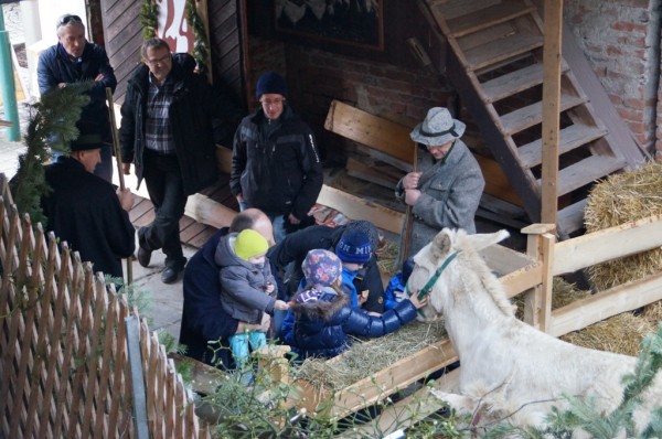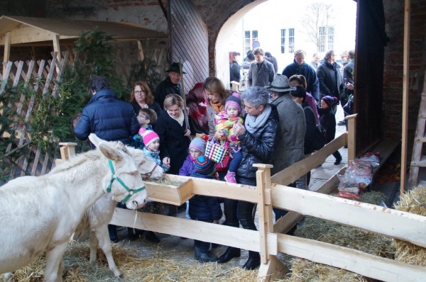 Viele Eltern nützten die Gelegenheit, um mit ihren Kindern die Zeit vor der Bescherung zu verkürzen oder vor der Kindermette die lebendige Krippe zu besuchen. Äpfel und Karotten wurden zur Verfügung gestellt und die zahlreichen kleinen und großen Besucher durften die Tiere damit füttern.