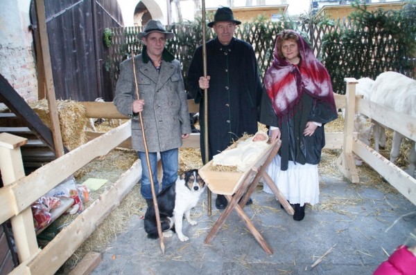 So wie im Vorjahr gab es auch heuer wieder am Nachmittag des Heiligen Abend eine Lebendige Krippe am Marktplatz. Die im Hindinger-Hof aufgebaute Krippe wurde dargestellt mit Maria (Anita Rastinger) und Josef (Alois Reither), einem Hirten (Johann Fellner) mit Hirtenhund, sowie weißen Eseln, Schafen und Böcken. Einzig das Jesuskind war eine Puppe.