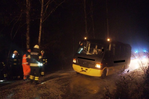 Ein Reisebus sollte eine Silvestergesellschaft von der Rettenbachalm abholen. Aufgrund von plötzlich aufgetretenem Blitzeis, verwandelte sich die Straße in eine spiegelglatte Eisbahn. Trotz des sofortigen Einsatz des Streudienst der Stadtgemeinde Bad Ischl veränderte sich der Straßenzustand kaum. Der Lenker geriet ins Rutschen und blieb seitlich im vertieften Graben hängen. Die eingetroffenen Florianis zogen den Bus mit der Seilwinde des Rüstlöschfahrzeuges und einem Greifzug aus dem Graben.