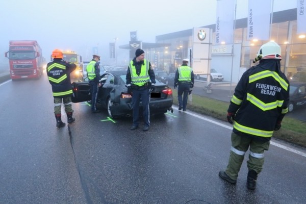 Ein 44-Jähriger aus Altmünster fuhr am 11. Jänner 2016 gegen 7:45 Uhr mit seinem Pkw in Regau auf der B145 Richtung Vöcklabruck. Hinter ihm lenkte ein 30-Jähriger aus Regau seinen Pkw in dieselbe Richtung. Der 44-Jährige musste auf Höhe Salzkammergut Straße 3 verkehrsbedingt bremsen. Der 30-Jährige dürfte dies zu spät bemerkt haben und fuhr dem Vorausfahrenden auf.