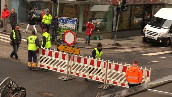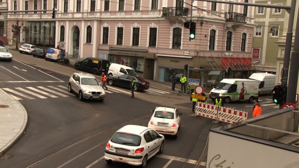 Da der Abschnitt Rathausplatz nun gemeinsam mit der Theatergasse – und nicht wie ursprünglich geplant gemeinsam mit der Kammerhofgasse – errichtet wird, ist auch die Bauzeit etwas länger als geplant. Dazu kommt noch, dass einige Sanierungsmaßnahmen an den unterirdischen Leitungen durchgeführt werden. „Hervorzuheben ist in diesem Zusammenhang der Neubau des Entlastungskanals zwischen Grabenkreuzung und Kreuzung Theatergasse / Sparkassegasse“, erläutert Christoph Döderlein, verantwortlicher Projektleiter bei Stern & Hafferl Verkehr. „Damit werden in Zukunft unwetterbedingte Überschwemmungen weitgehend vermieden.“ Zwischen Schiffslände und Rathausplatz erfolgt im März eine Bohrung zur Verlegung einer neuen Gas- und Wasserleitung.