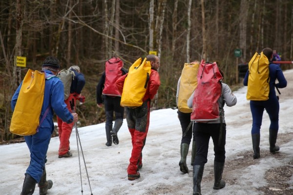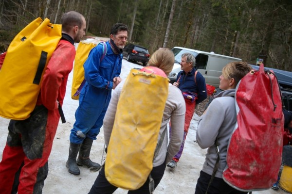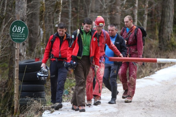 Der Höhleneingang befindet sich rund zweieinhalb Stunden entfernt. Die Hirlatzhöhle an der Nordflanke des Hirlatz im Dachsteingebirge bei Hallstatt ist mit über 100 km erforschter Länge und 1.000 m Tiefe die derzeit drittlängste bekannte Höhle Österreichs. Die Hilfskräfte wollen den Leichnam mit einer Seilwinde bergen. Dazu müssen die Bergretter Verankerungen in der Höhle fixieren und selbst eine art Seilbahn errichten. Zusätzlich müssen sie eine Halle der Höhle überwinden und sich über einen Schacht abseilen.
