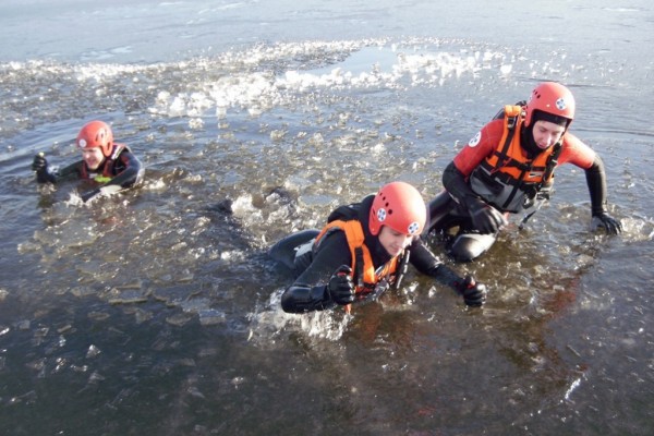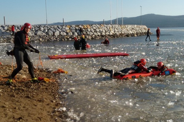 Auf Grund des sehr milden Wetter in den letzten Tagen wurde die Beschaffenheit des Eises zu einer sehr kräfteraubenden Übung und war für die Retter sehr realitätsnah. Von unschätzbarem Wert sind die Erfahrungen am eigenen Körper mit dem eisigen Wasser in Kontakt zu kommen, um für den Ernstfall gerüstet zu sein.