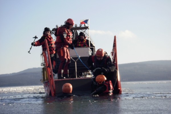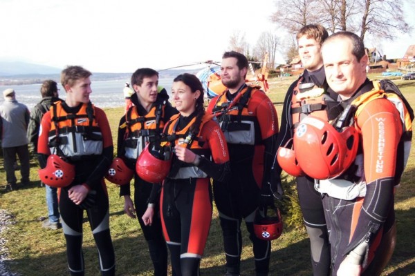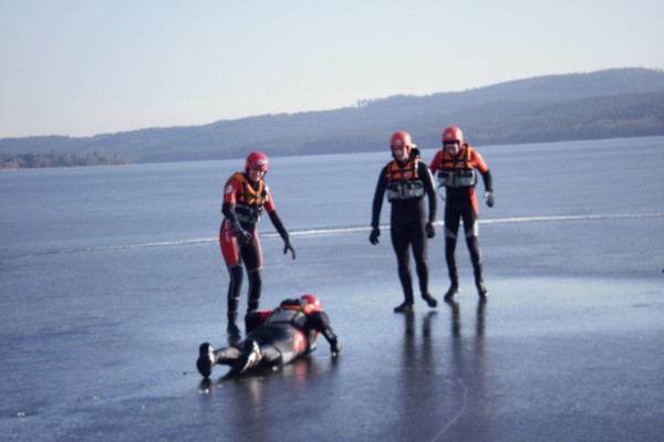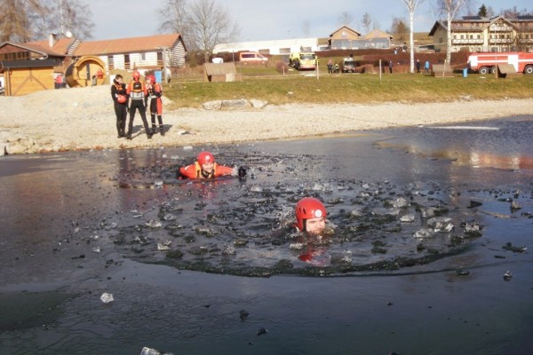 Die Teilnehmer, hauptsächlich von den Tschechischen Rettungsorganisationen waren in Dolni Vltavice am Stausee zusammengekommen um am Vormittag bei Theoretischen Vorträgen mehr über die Eisbergung zu erfahren. Am Nachmittag wurde das gelernte in die Praxis umgesetzt. Dabei wurden mit den Kollegen aus Südböhmen die verschiedensten Bergemethoden aus dem eiskalten Wasser geübt. Ein Höhepunkt dieser Übung war sicherlich die Bergung zweier im Eis eingebrochenen Personen mit dem Hubschrauber.