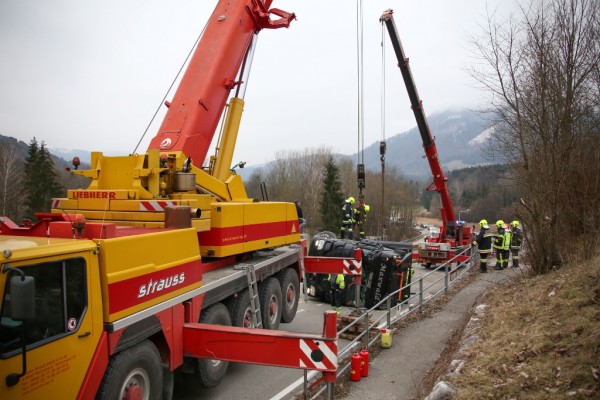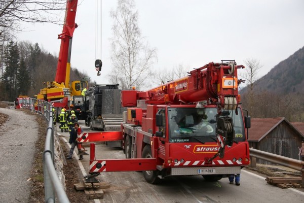 Vier schwere Bergefahrzeuge samt Begleitfahrzeugen waren im Einsatz, um den mit Schnittholz beladenen Lkw zu bergen. Das über 16 Meter lange Sattelfahrzeug musste mittels zwei schwerer Kräne gehoben werden. Die Abschleppung erfolgte mit einem Spezialabschleppwagen. Die gesamte Almseelandesstraße war während der Bergearbeiten für vier Stunden gesperrt und der Verkehr wurde örtlich umgeleitet.